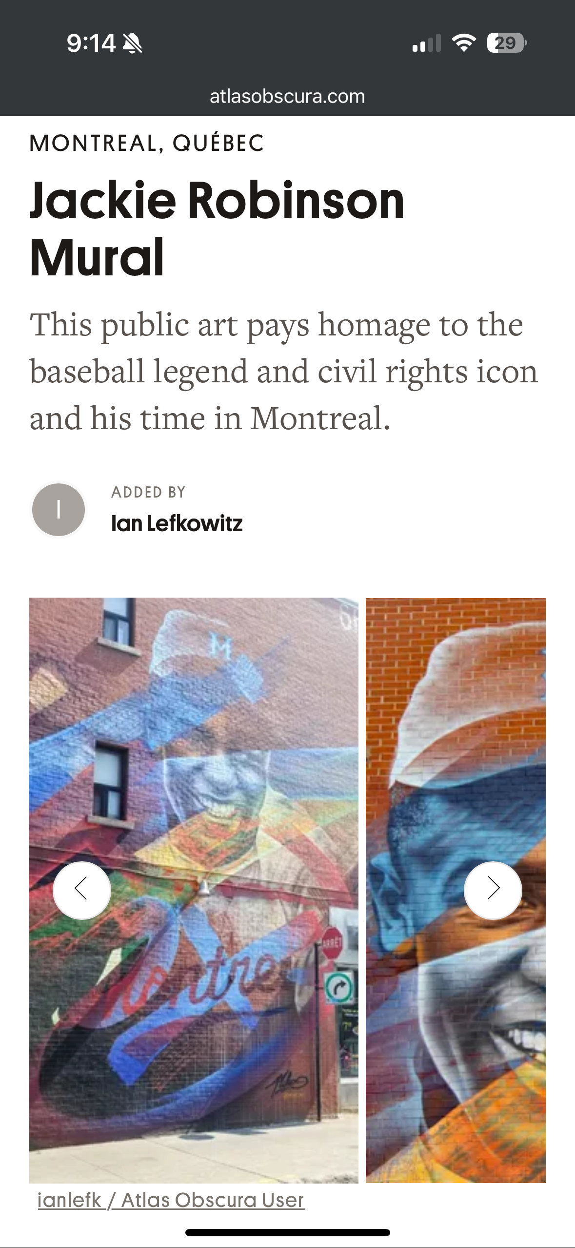 …got a three-storey mural of Jackie Robinson painted in Montreal (not by me)…